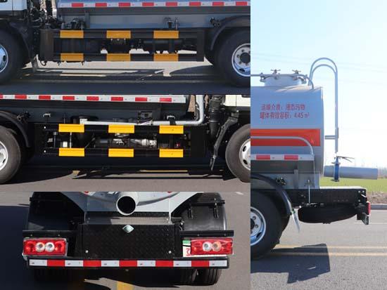 | 其它 | 該車專用裝置為罐體,用于糞便、污液、泥漿等液態(tài)污物的收集和清理作業(yè);僅采用3360mm軸距;運輸介質(zhì):液態(tài)污物,罐體總?cè)萘?4.6立方米,罐體有效容積:4.45立方米;罐體截面形狀:罐體尺寸(長×長軸×短軸)(mm):3400×1650×1200;側(cè)后防護裝置材料均為:Q235B,側(cè)后防護裝置與車架連接方式均為螺栓連接,后防護裝置截面尺寸為:100×50mm,離地高度420mm;ABS型號及生產(chǎn)廠家:CM4XL-4S/4M/廣州瑞立科密汽車電子股份有限公司; | ||