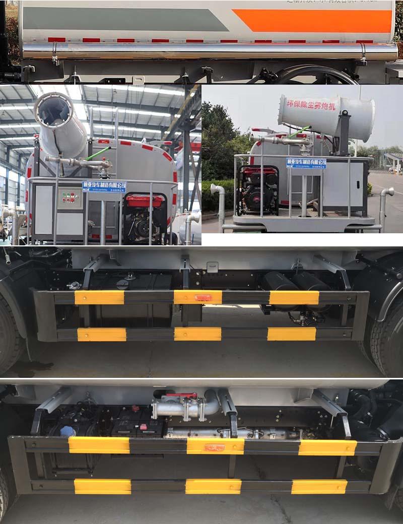 | 其它 | 專用裝置為抑塵霧炮,用于城市抑塵;僅采用3800mm軸距;罐體有效容積為7.6立方米,罐體截面形狀:罐體尺寸(長×長軸×短軸)(mm):4100×2000×1250;側(cè)后防護(hù)裝置材料均為:Q235B,側(cè)后防護(hù)裝置與車架連接方式均為螺栓連接,后防護(hù)裝置截面尺寸為:120×60mm,離地高度410mm;ABS型號(hào)及生產(chǎn)廠家:ABS/ASR-24V-4S/4M/襄陽東風(fēng)隆誠機(jī)械有限責(zé)任公司.隨底盤選裝尿素罐、儲(chǔ)氣筒、蓄電池等安裝位置,選裝噴霧機(jī)安裝位置,選裝側(cè)面加裝裝飾管. | ||