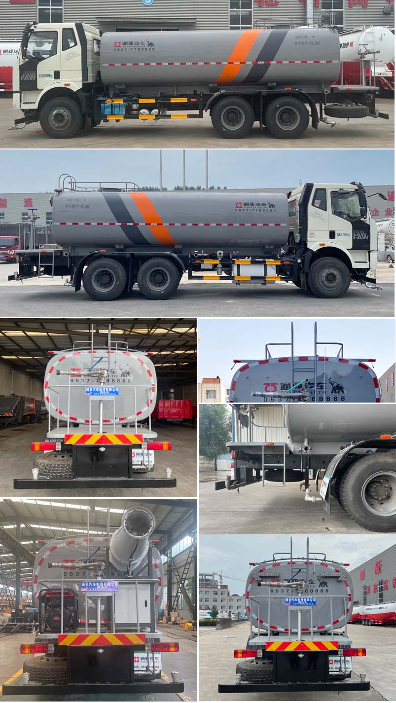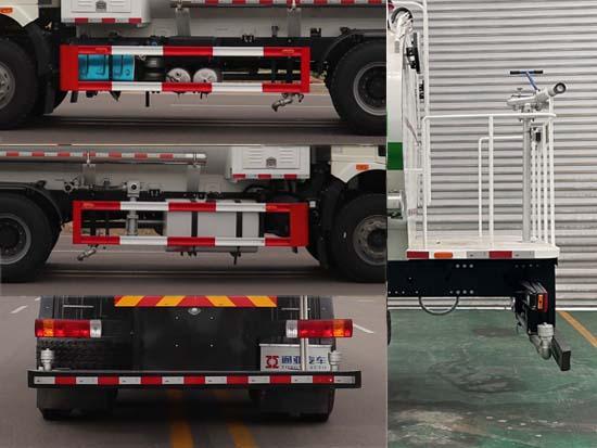 | 其它 | 加裝罐體及清洗裝置,用于清理路面或管道沉積物或清洗機(jī)械表面;僅采用軸距為:4350+1350mm,選裝前高壓沖洗裝置時(shí),前伸為920mm,整備質(zhì)量為:11370kg,罐體有效容積為13.4立方米,罐體尺寸(長(zhǎng)×長(zhǎng)軸×短軸)(mm):5800×2290×1590;整備質(zhì)量為:10585kg時(shí),罐體有效容積為14.2立方米,罐體尺寸(長(zhǎng)×長(zhǎng)軸×短軸)(mm):6000×2290×1550;選裝后部加裝圓形指示燈或箭頭指示燈,選裝兩種指示燈安裝一種或兩種同時(shí)安裝,選裝加裝后上部噴霧桿,選裝后部加裝噴霧機(jī)裝置,側(cè)后防護(hù)裝置材料均為:Q235B,側(cè)防護(hù)裝置與車架連接方式為螺栓連接;后防護(hù)裝置與車架連接方式為焊接,后防護(hù)裝置截面尺寸為:120×68mm,離地高度480mm;ABS生產(chǎn)廠家:1.長(zhǎng)春瑞立科密汽車電子有限公司,型號(hào):CM4XL.ABS生產(chǎn)廠家:2.威伯科汽車控制系統(tǒng)(中國(guó))有限公司,型號(hào):ABS-E.裝備限速裝置,限速89km/h. | ||